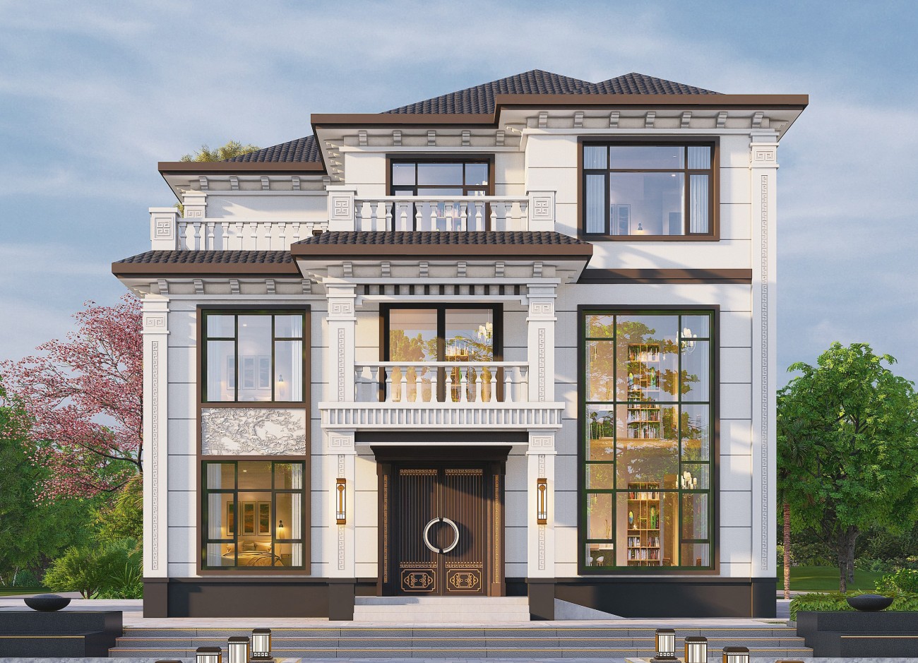 图木舒克17 三层新中式(10x12米)-【易设计】